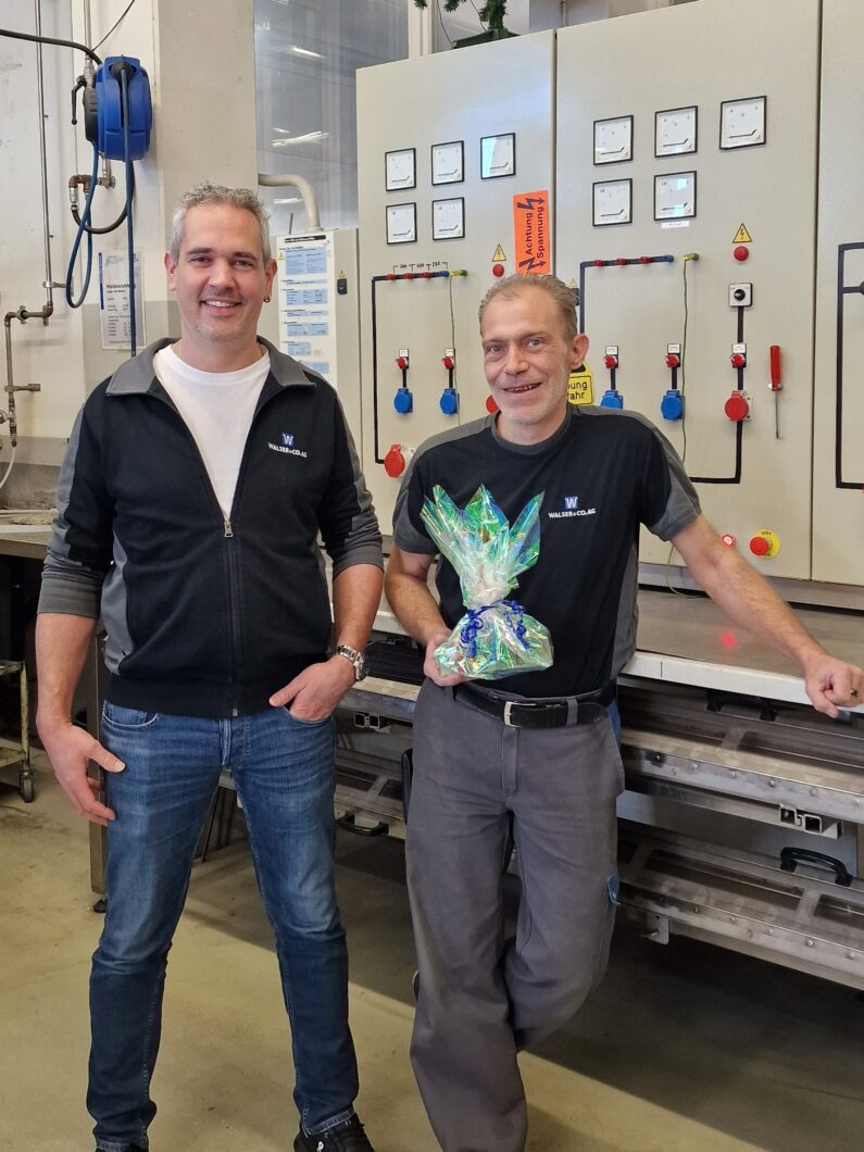 Berni, herzlichen Dank für deinen täglichen Einsatz für eine äusserst exakte Arbeitsweise, deine Verlässlichkeit und deine Loyalität gegenüber uns und unseren Kunden. Wir sind dankbar, dass wir dich bei uns haben dürfen. Für deine Zukunft wünschen wir dir alles Gute und wir freuen uns auf die kommende Zeit mit dir.